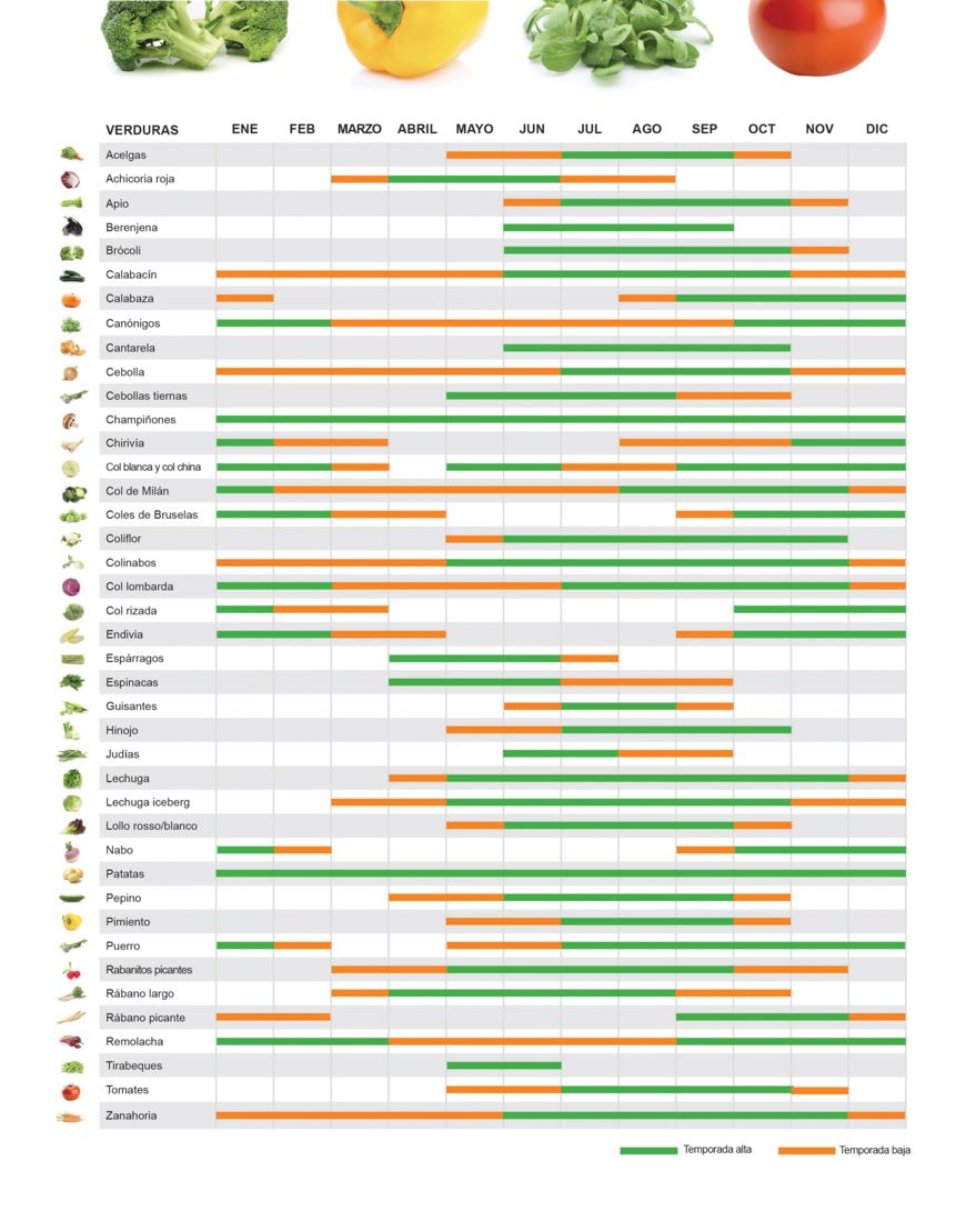 • Verduras y frutas: En los supermercados convencionales encontramos todo tipo de verduras y frutas durante absolutamente todo el año. Te recomiendo que vayas al mercadillo y compres verdura local y de la estación. Si no sabes lo que crece ahora mismo puedes mirar esta tabla!.  temporada