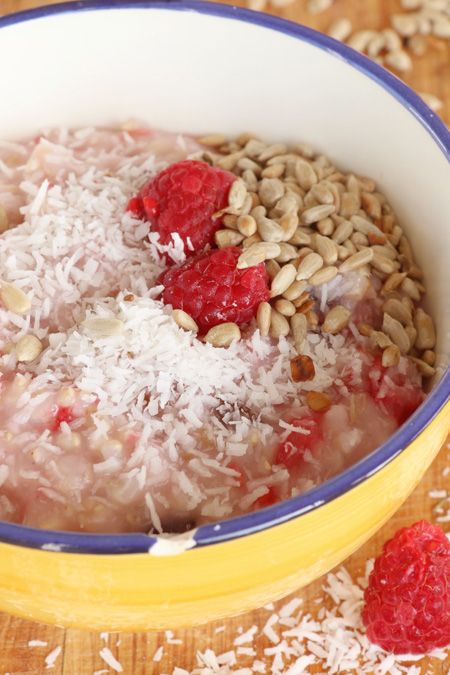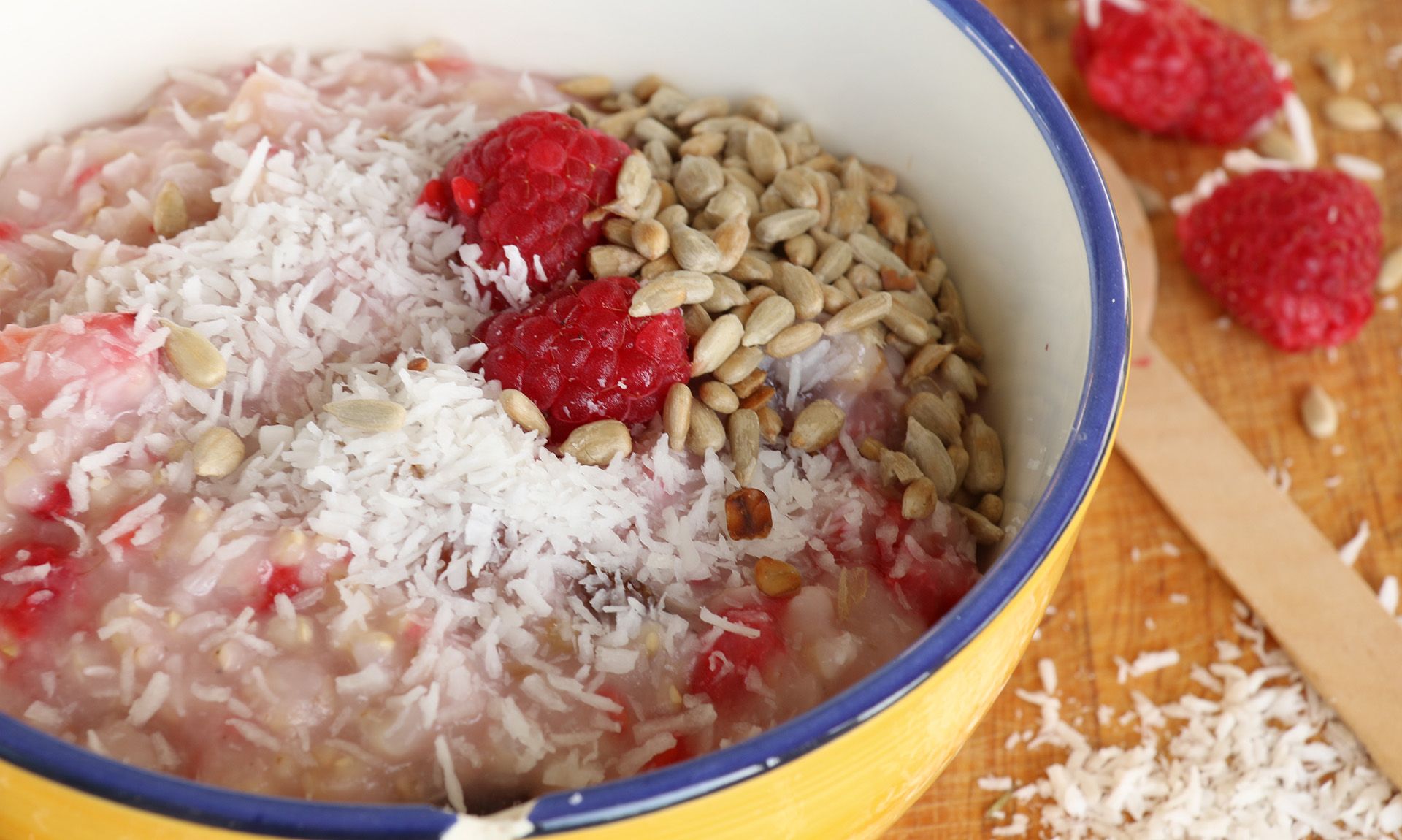 3. Servir si se desea con fresas troceadas, coco rallado y semillas de girasol tostadas