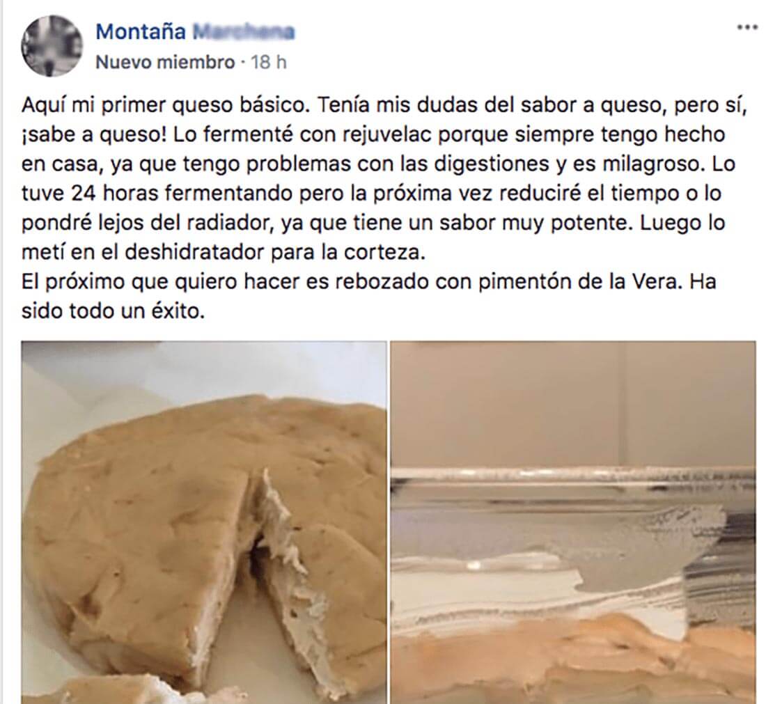 “Quien suela hacer quesos en casa no los va a echar de menos, porque están muy buenos. Además si pones los mismos fermentos que un camembert, que un roquefort vas teniendo sabores… no son exactamente igual, pero son mejores”