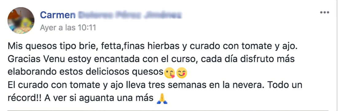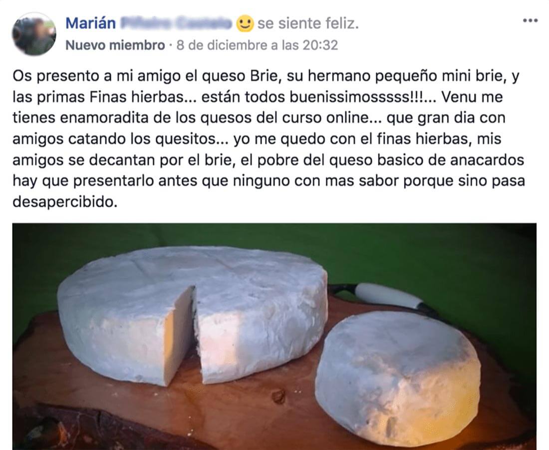 “Al hacer tu masterclass y desde el minuto 0 empezar hacer quesos fue como Wooww. Entonces ya luego cuando vi el curso más extenso fue no pensármelo.”