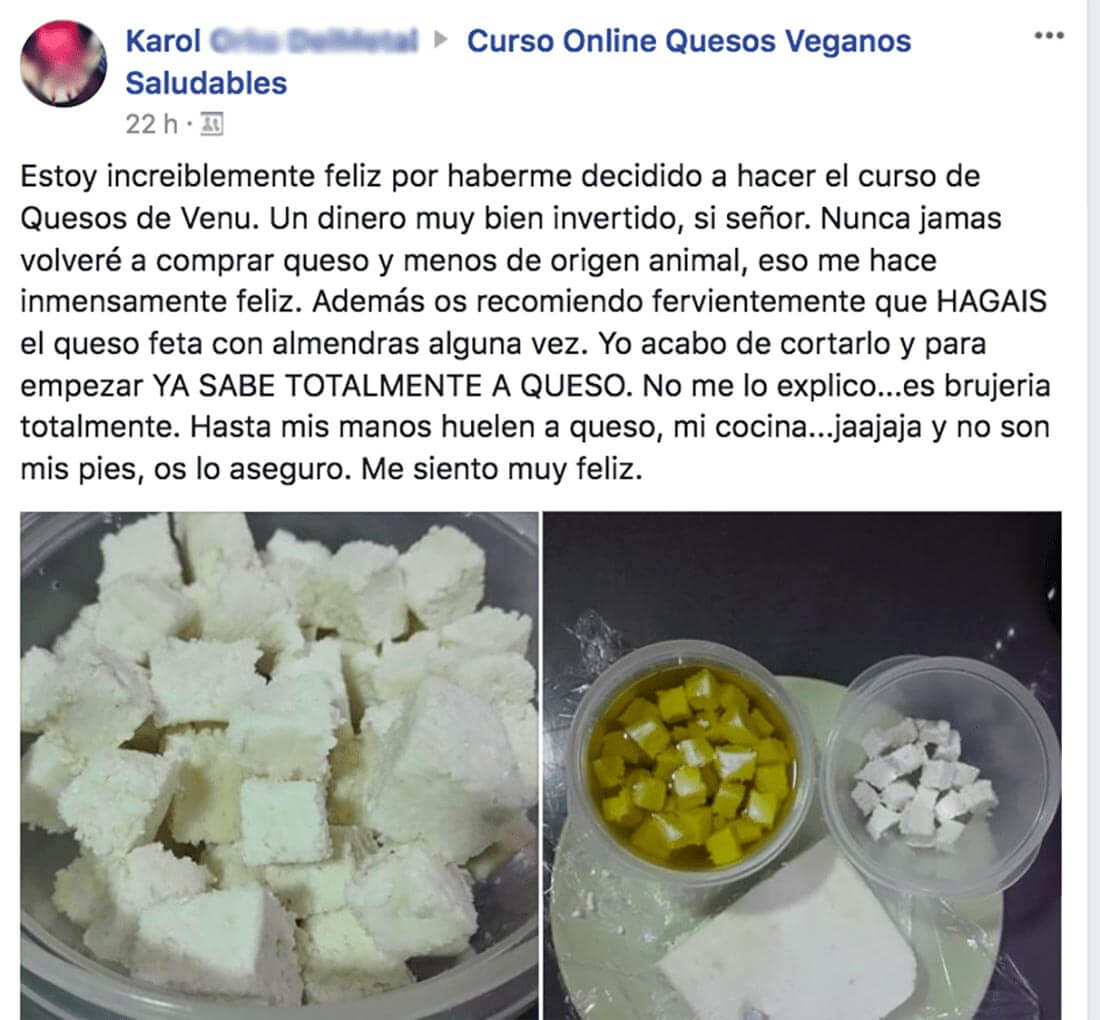 “El queso que más consumo ahora es el queso vegano de la formación y si tenéis la oportunidad hacerlo, porque no os arrepentiréis.”