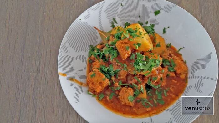 Receta de Patatas a la Riojana con “chorizo” de tempeh