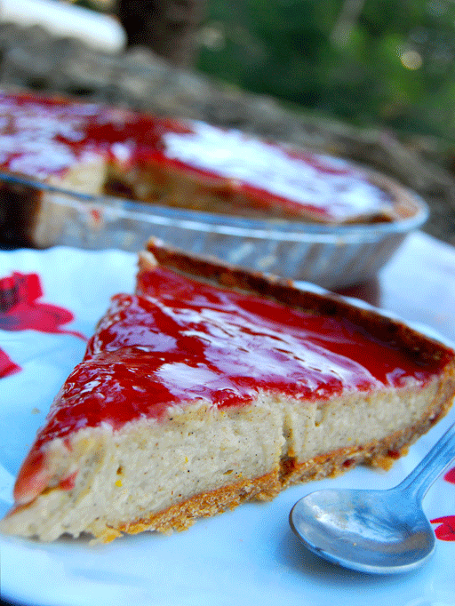 Desde que hice el cambio hacia una dieta más natural basada principalmente en productos vegetales he probado un montón de imitaciones de la tarta de queso: hechas con tofu, con leche vegetal y agar agar… pero nunca la había probado con mijo y anacardos y creo que esta es de mis versiones favoritas. Después de probar las imitaciones y de volver a catar la original, ésta ya no me sabe como antaño; debe ser que el paladar me ha cambiado y ahora soy más sensible a los productos de origen animal, ahora prefiero mucho más aquella elaborada con ingredientes vegetales.