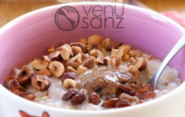 4. ¿Y es mejor desayunar dulce o salado? Pues eso ya depende de ti. Yo hay veces que me tomo la crema de arroz con unas pasitas, ralladura de limón, canela y vainilla y, de hecho, si quieres empezar con la crema de arroz te recomiendo que lo hagas así. Pero también hay muchas veces que me la tomo con un poco de salsa de soja y sésamo triturado… Tienes que tener en cuenta que el aporte de azúcar provocará una subida de glucosa importante, durante muy poco tiempo, bajando dramáticamente nuestro energía a media mañana. Y de vuelta a la rueda sin fin…el chocolate, el café, bebidas estimulantes…etc. Si eliges dulce que sea una dulce muy natural, estable y muy ligero: el dulce de unas pasas, de una compota de manzana, o del sirope de arroz, por ejemplo.